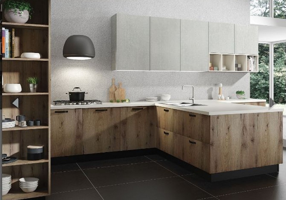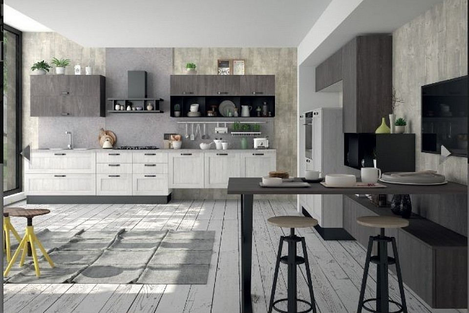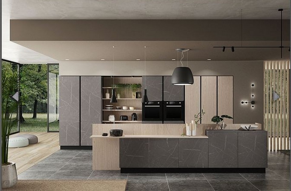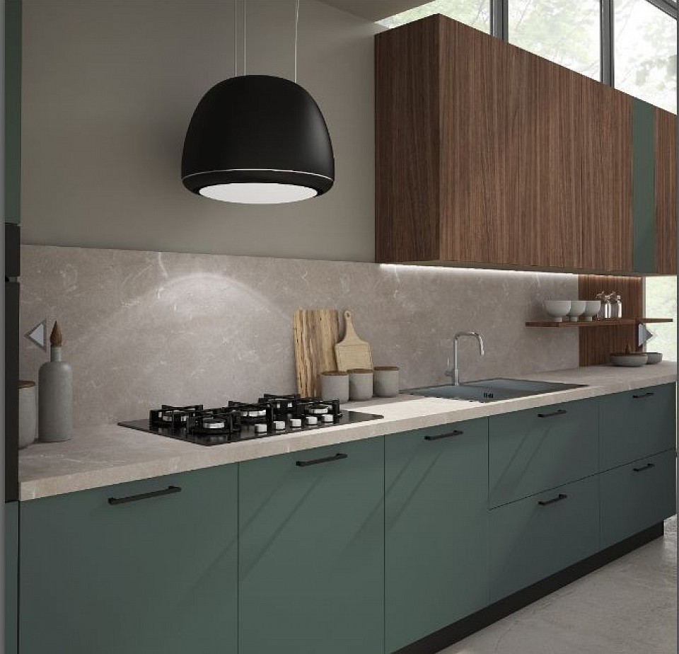 Abbinamenti studiati per creare equilibrio visivo e personalità nell’ambiente cucina.