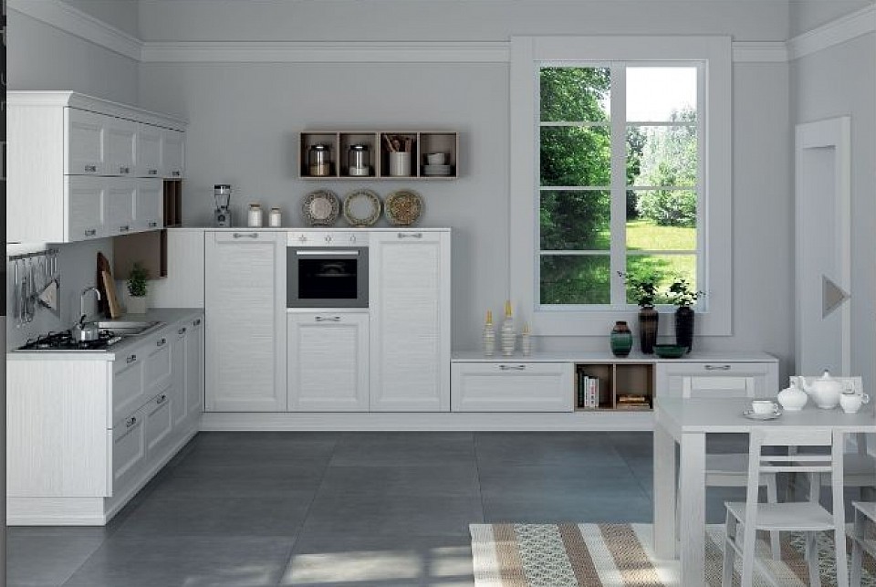 Linee tradizionali reinterpretate con soluzioni moderne per un ambiente accogliente e funzionale.